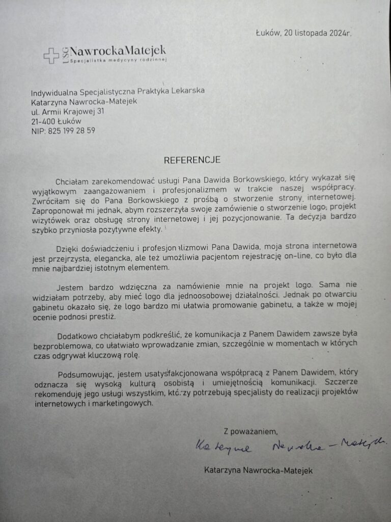 Poniżej przedstawiamy pisemne referencje od naszych klientów.